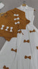 A graceful and trendy outfit featuring a soft lavender top paired with an ivory skirt, beautifully enhanced with signature round bow patch detailing for a chic feminine look. Perfect for casual outings and semi-formal wear with elegant fall and neat stitching.